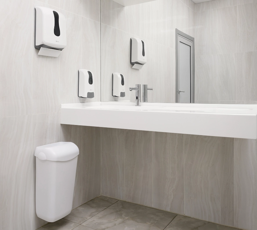 Стоит обратить особое внимание на линейки различных дозаторов и диспенсеров для санитарных комнат.